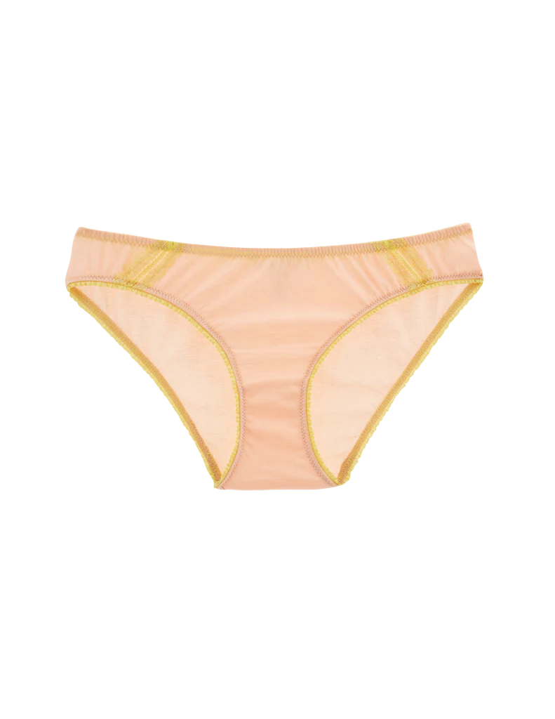 The panty captured on Scarlett Johansson in the quiet opening frame of Sofia Coppola's cult classic film, Lost In Translation. Cut in soft semi-sheer cotton crepe and detailed with delicate contrast lace trim in signature Araks color pairings.